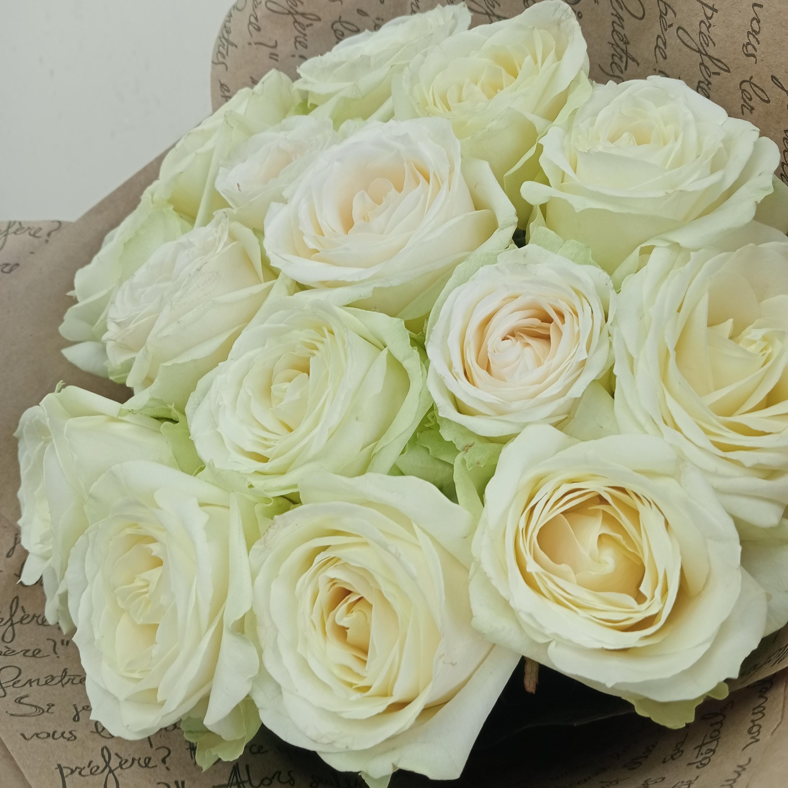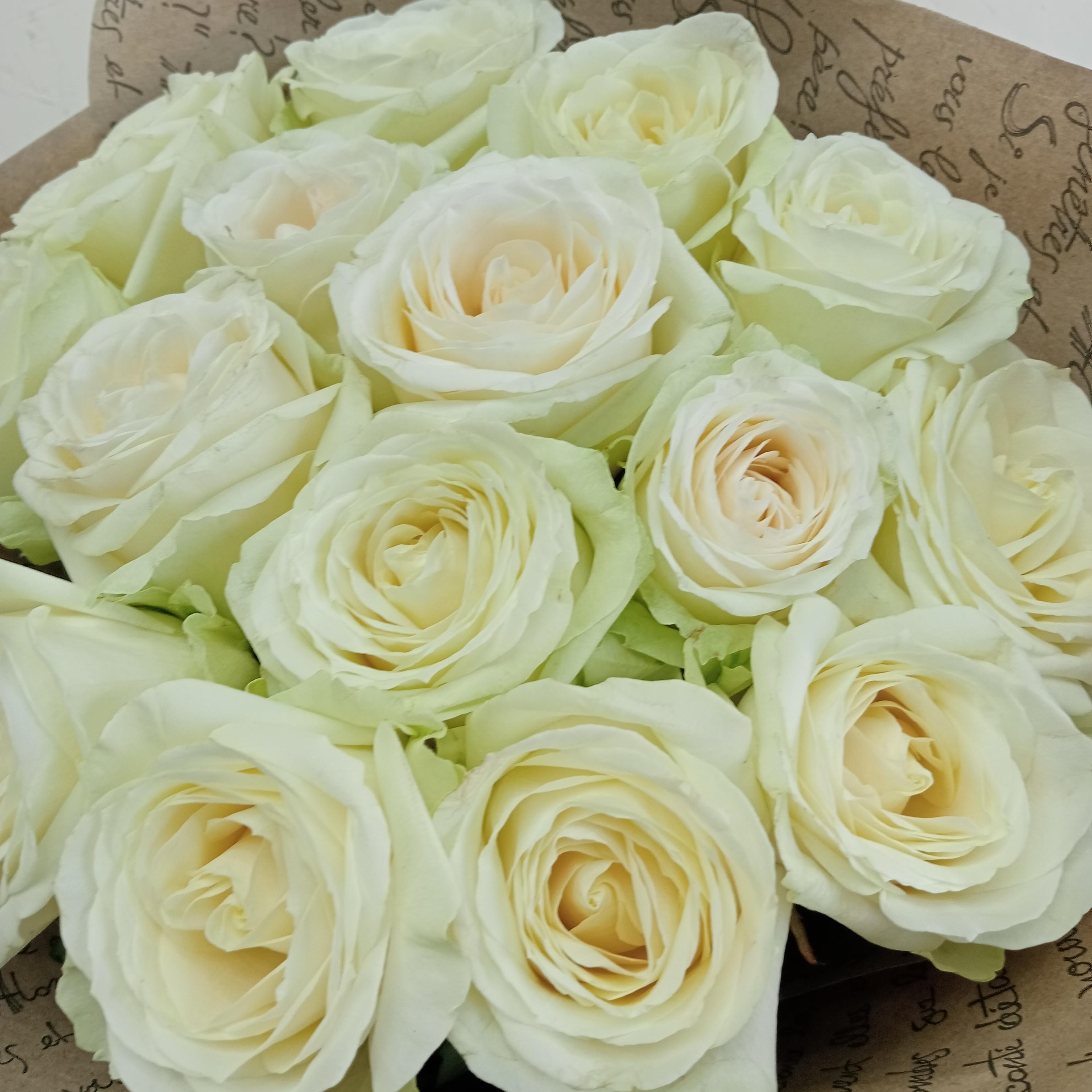 Букет из 15 белых роз - подходит для романтических мероприятий. Подходит для подарка женщинами и мужчинам, в любом возрасте и по разному поводу.